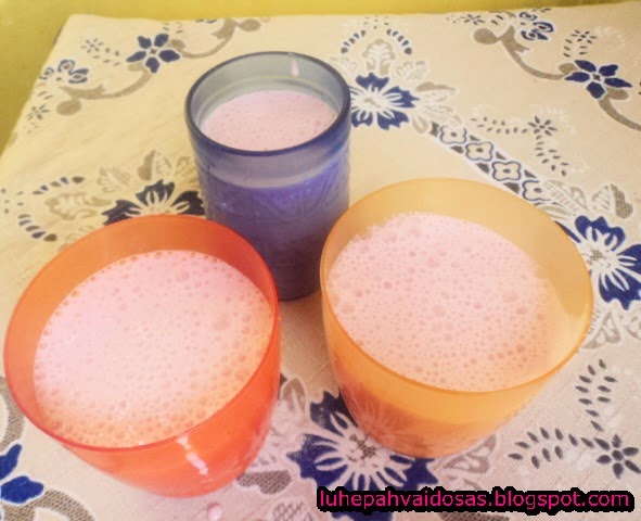 E está pronto.Aqui mostramos o suco pronto de morango e uva: